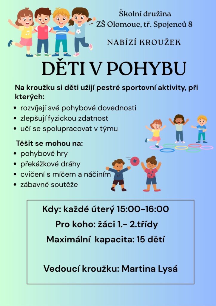 společně s paní vychovatelkou Mgr. Lucii Lukačovou Vás zveme do naší školní družiny, kde nás čeká plno dobrodružství, her, tvoření, smíchu a nových kamarádství. 🌈✨